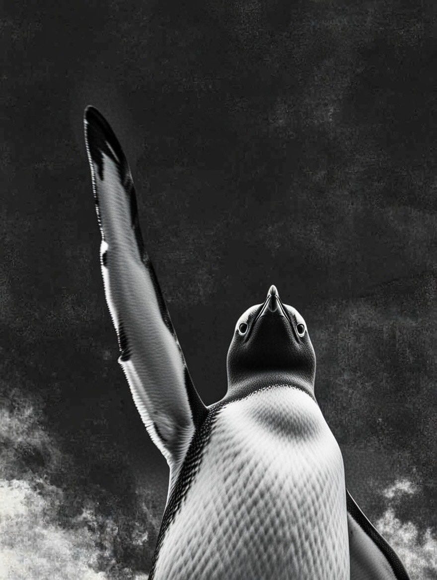 Abraçar o pinguim não é imitá-lo cegamente. É reconhecer a existência desse impulso, e aceitar que, sem ele, o mundo pode até continuar funcionando, mas ninguém saberá mais por quê.